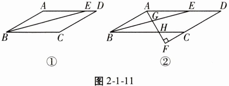 (2)如图2-1-11②,过点A作$AF⊥DC$,交DC的延长线于点F,分别交BE,BC于点G,H,且$AB= AF$。求证:$ED-AG= FC$。