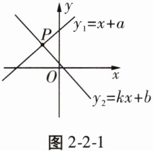 6. 如图2-2-1,直线$y_{1}= x+a与直线y_{2}= kx+b相交于点P(-1,2)$,则关于x的不等式$x+a>kx+b$的解集正确的是 ()