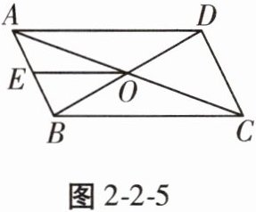 12. 如图2-2-5,▱ABCD的对角线AC,BD相交于点O,点E是AB的中点,$\triangle AEO$的周长是8,则$\triangle ACD$的周长为____。