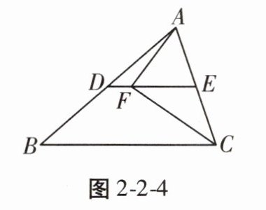 10. 如图2-2-4,DE是$\triangle ABC$的中位线,点F在DE上,且$∠AFC= 90^{\circ }$。若$AC= 10$,$BC= 16$,则DF的长为 ()