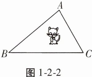 1. 如图 1 - 2 - 2,地面上有三个洞口 A,B,C,老鼠可以从任意一个洞口跑出,猫为了能同时最省力地顾及三个洞口(到 A,B,C 三个点的距离相等),尽快抓到老鼠,应该蹲守在()