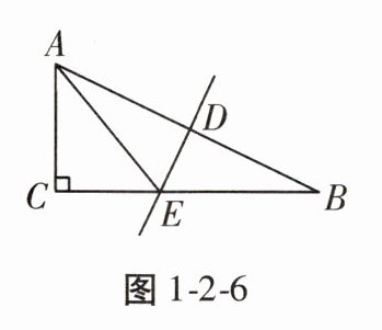 5. 如图 1 - 2 - 6,在 Rt△ABC 中,∠C = 90°,AB 边的垂直平分线 DE 交 BC 于点 E,垂足为 D,AC = 4cm,CB = 8cm,△ACE 的周长是()