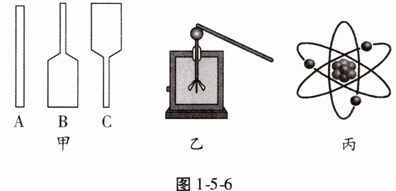 (4)保持物质化学性质不变的最小微粒是______。______提出了如图1-5-6丙所示的原子核式结构模型,该模型的中心是带______(选填“正”或“负”)电的原子核。