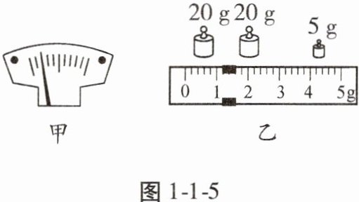 4. 如图1-1-5所示,图甲是托盘天平调节前的情形,图乙是天平调节平衡后称量物体质量时砝码及游码的示数。下列说法正确的是