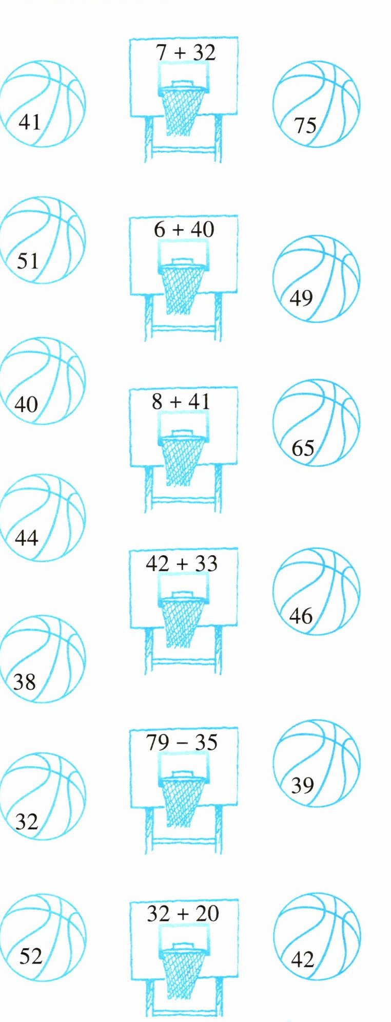 7-32=39 6+40=46 8+41=49 42+33=75 79-35=44 32+20=52 根据这个得数连线