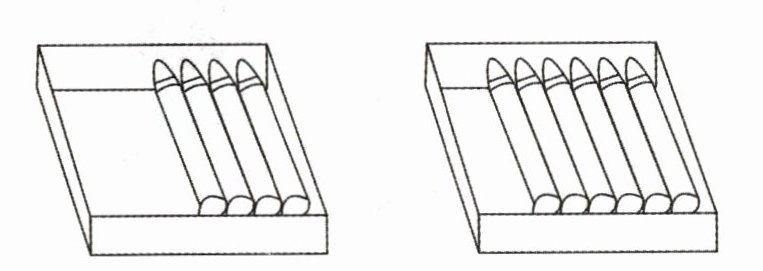 美术老师要求每名同学带12支蜡笔。小方已经有6支,小明已经有8支,他们各自还需要拿走下面的哪一盒才够12支?算一算,在盒子下面的括号里写上他们的名字。