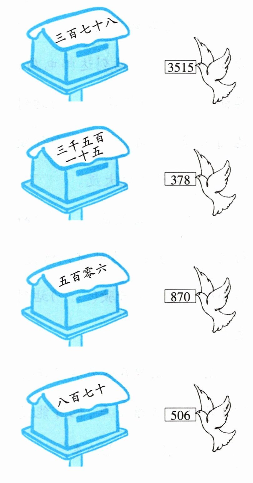【答案】:三百七十八——378;三千五百一十五——3515;五百零六——506;八百七十——870。