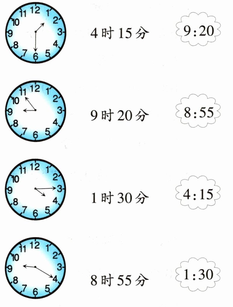 第三个钟表连4时15分($4:15$)。
