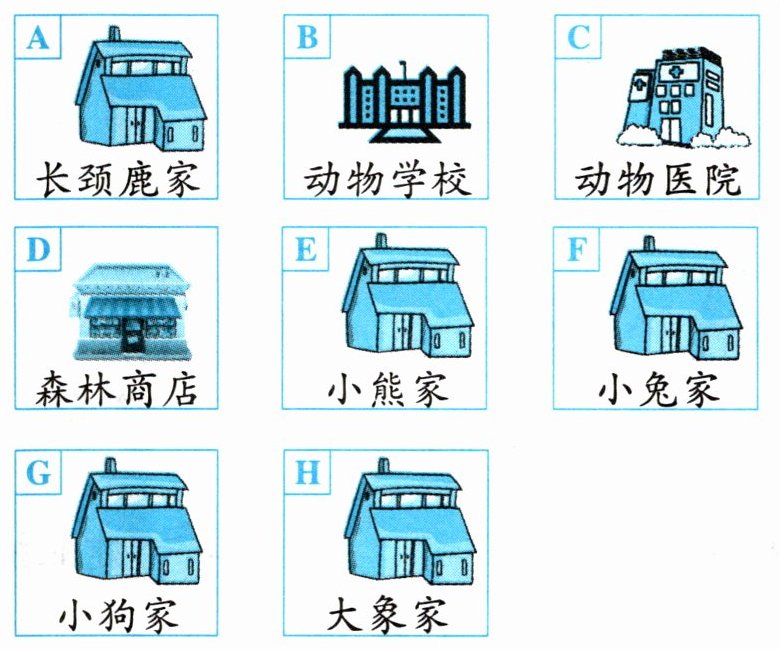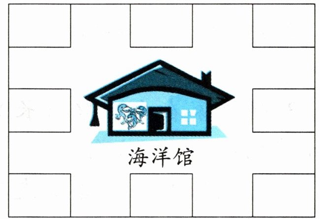 1. 长颈鹿家在海洋馆的北面,动物学校在海洋馆的南面。