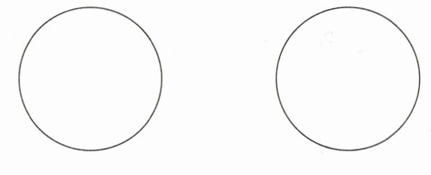 2. 拿出一张圆形的纸,分别折出它的$\frac {1}{2},\frac {1}{4},\frac {1}{8}$,并指出它的$\frac {3}{4},\frac {3}{8}$各是哪部分。动手操作后,请在下面两个圆中画出示意图。