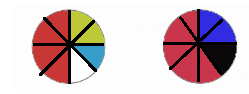红色$\frac {1}{2}$ 黄色$\frac {1}{4}$ 蓝色$\frac {1}{8}$
