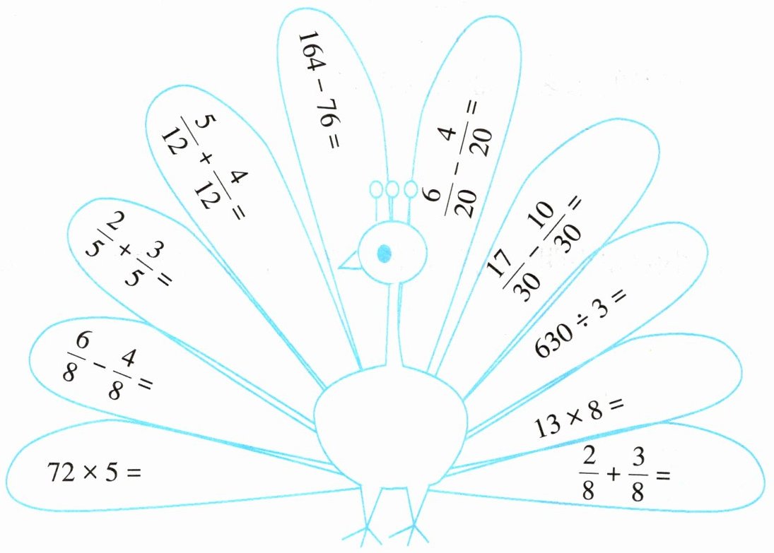 一、根据下面的分数,给图形涂上你喜欢的颜色。