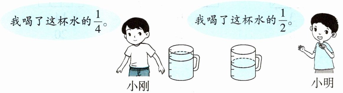 2. 小刚和小明分别还剩各自杯中水的几分之几没有喝?