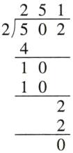 502÷2=251 214÷4=53……2