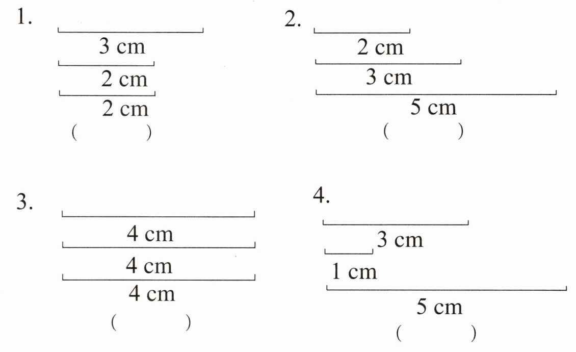 二、下面哪组线段能围成三角形?在能围成三角形的一组线段下面画“√”。