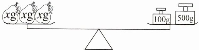 1. 3 个梨的质量 = 100 克 + 500 克 $3x = 100 + 500$