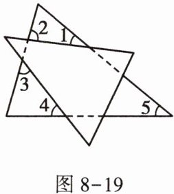 8. 将两张三角形纸片如图8-19摆放,量得$ \angle 1 + \angle 2 + \angle 3 + \angle 4 = 220 ^ { \circ } $,则$ \angle 5 $的度数为______.
