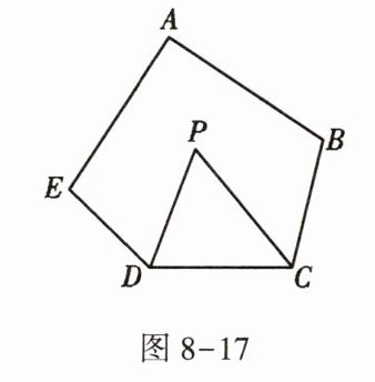 5. 如图8-17,在五边形$ A B C D E $中,$ \angle A + \angle B + \angle E = 300 ^ { \circ }, D P, C P 分别平分 \angle E D C, \angle B C D $,则$ \angle P $的度数是 ( )