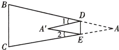 $\therefore ∠1+∠2=360^{\circ }-2(∠ADE+∠AED)=360^{\circ }-2(180^{\circ }-∠A)=2∠A.$