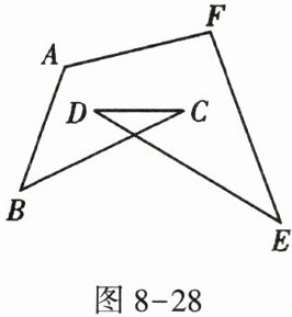 9. 如图 8 - 28,计算:$∠A+∠B+∠C+∠D+∠E+∠F$的度数为____.