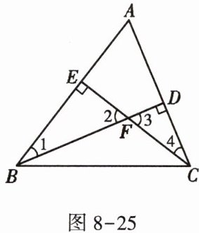 3. 如图 8 - 25,BD,CE 是$△ABC$的高,则下列结论错误的是 ( )