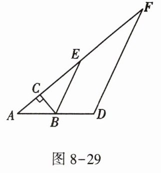 11. 如图 8 - 29,在$△ABC$中,$∠ACB= 90^{\circ },∠A= 40^{\circ },△ABC的外角∠CBD$的平分线 BE 交 AC 的延长线于点 E.