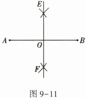 2. 如图9-11,已知线段AB的长为4。现按照以下步骤作图:①分别以点A,B为圆心,以大于$\frac{1}{2}AB$的长为半径画弧,两弧分别相交于点E,F;②过E,F两点作直线,与线段AB相交于点O。则AO的长为( )