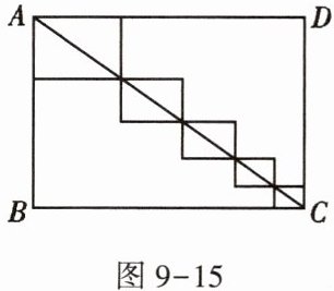 1. 如图9-15,在长方形ABCD中,AB = 6,BC = 8,则图中五个小长方形的周长之和为______。