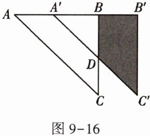 2. 如图9-16,△ABC经过平移得到△A'B'C',若四边形ACDA'的面积为$6cm^2,$则阴影部分的面积为( )