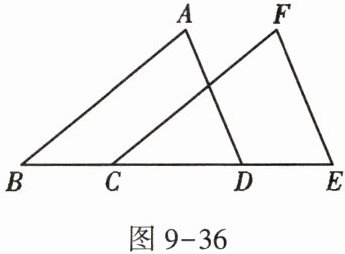 8. 如图9-36,$△ABD$沿BD平移到了$△FCE$的位置,$BE= 10,CD= 4$,则平移的距离是 _ .