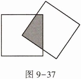9. 有两个边长为4 cm的正方形,其中一个正方形的顶点在另一个正方形的中心上,那么图9-37中阴影部分的面积是 _ $cm^{2}$.