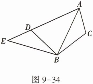 6. 如图9-34,将$△ABC$绕点B逆时针旋转α,得到$△EBD$,若点A恰好在ED的延长线上,则$∠CAD$的度数为 ( )