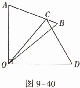 12. 如图9-40,$△COD是△AOB$绕点O顺时针旋转$40^{\circ }$后得到的图形,若点C恰好落在AB上,$∠ACO= ∠A$,且$∠AOD的度数为90^{\circ }$,求$∠B$的度数.