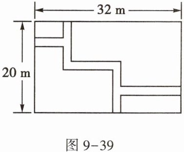 11. 如图9-39,某居民小区有一长方形地,居民想在长方形地内修筑同样宽的两条小路,余下部分绿化,道路的宽为2m,则绿化的面积为多少平方米?