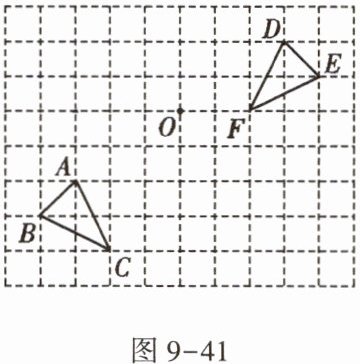 13. 如图9-41,方格纸中的每个小方格都是边长为1个单位长度的正方形,每个小正方形的顶点叫格点,$△ABC和△DEF$的顶点都在格点上.