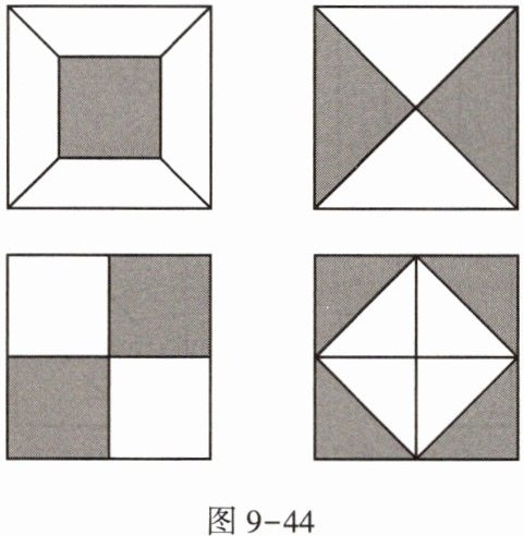 3. 图9-44所示的四个图案,既可以用旋转来分析整个图案的形成过程,又可以用轴对称来分析整个图案的形成过程的有 ( )