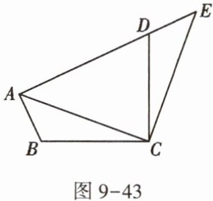 2. 如图9-43,将$\triangle ABC绕点C顺时针旋转90^{\circ}得到\triangle EDC$. 若点$A,D,E$在同一条直线上,$\angle ACB= 20^{\circ}$,则$\angle ADC$的度数是 ( )
