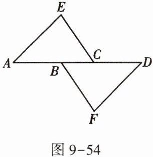 12. 如图9-54,将$\triangle AEC$平移、旋转至$\triangle DFB$的位置,点$A,B,C,D$在同一条直线上,$AE= DF$,$CE= BF$,$AD= 8$,$BC= 2$.