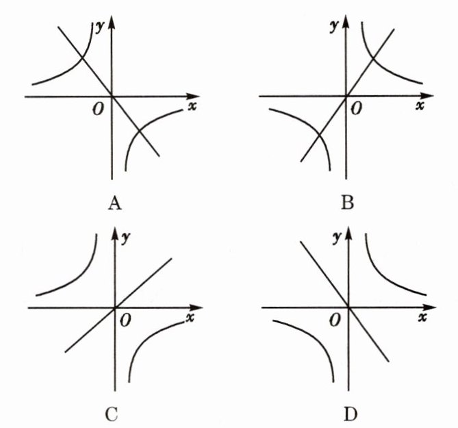 2. 已知一次函数$y=kx+b$的图象如图17-16,那么正比例函数$y=kx$和反比例函数$y=\frac{b}{x}$在同一坐标系中的图象大致是 (