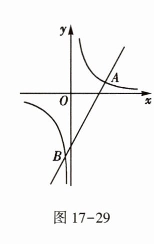 1. 如图 17-29,一次函数$y=mx+b$的图象与反比例函数$y=\frac {k}{x}$的图象交于$A(3,1)$,$B(-\frac {1}{2},n)$两点。