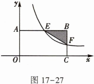 6. 如图 17-27,反比例函数$y=\frac {k}{x}(k>0)$的图象与矩形$ABCO$的两边相交于$E$,$F$两点,若$E$是$AB$的中点,$S_{△BEF}=2$,则$k$的值为 (