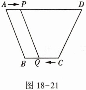 2. 如图 18-21,在四边形 ABCD 中,$ AD // BC $,且 $ AD > BC $,$ BC = 6 cm $,P,Q 分别从 A,C 点同时出发,P 以 $ 1 cm/s $ 的速度由 A 向 D 运动,Q 以 $ 2 cm/s $ 的速度由 C 向 B 运动,