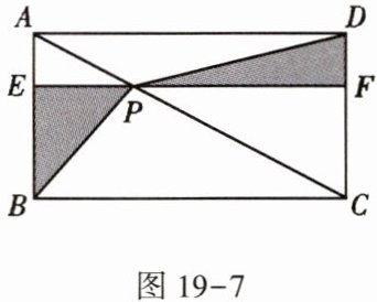 3. 如图19-7,P是矩形ABCD的对角线AC上一点,过点P作$EF// BC$,分别交AB,CD于E,F,连接PB,PD. 若$AE=2,PF=8$,则图中阴影部分的面积为 ( )