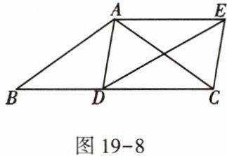 4. 如图19-8,在$\triangle ABC$中,$AB=AC$,D为边BC上一点,以AB,BD为邻边作$平行四边形 ABDE$,连接AD,EC.