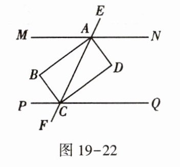 2. 如图19-22,已知MN $ // $ PQ,EF与MN,PQ分别交于A,C两点,过A,C两点作两组内错角的平分线,分别交于点B,D,则四边形ABCD是