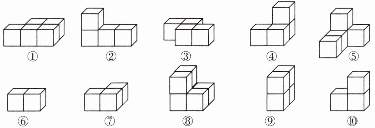 2. 如果从正面看到的和⑨一样,用5个小正方体摆一摆,有多少种不同的摆法?