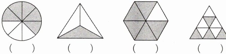 4. 把下面每个图形都看作单位“1”,用分数表示各图中涂色部分的大小。