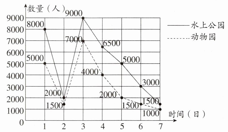 三、下面是某市2021年“十一”期间水上公园和动物园的游客统计图。