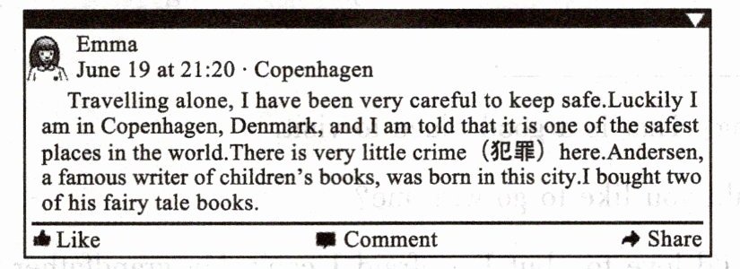 4. She didn't need to worry about her safety in Copenhagen because ______. ()