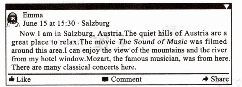 1. Emma was looking forward to this travel because ______. ()